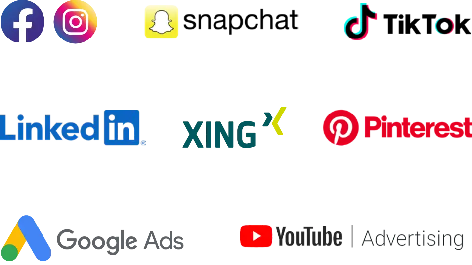 Google, YouTube, Facebook, Twitter, Instagram, LinkedIn, TikTok, Pinterest, Snapchat …